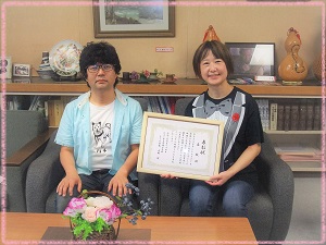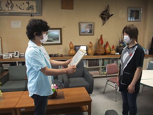 7/10に校長室にて大野PTA会長から表彰状を授与されました。