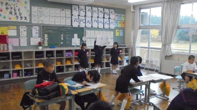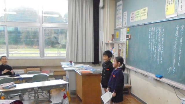 明日の2限は、大海っ子集会です。3年生の教室の前を通ると、まだ休み時間なのに明日に備えて発表練習をしていました。中身は・・・内緒と言われ、戸も閉められてしまいました。楽しみは明日!