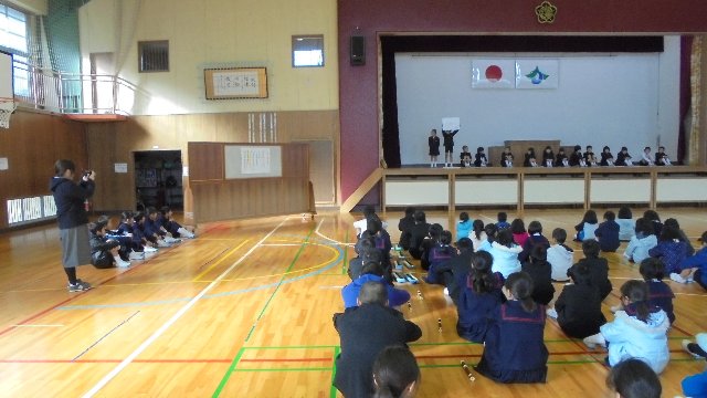 今回の出し物は3年、6年、放送委員会、飼育委員会からでした。学習発表あり、歌あり、ゲームあり、クイズあり・・・どの出し物もみんなが楽しめるものでした。大勢の前で堂々と大きな声で発表できたところも素晴らしかったです。感想コーナーも充実していました。お子さんはどんなところでがんばったのか、どんなことを見聞きしたのか、お家で話題にしてほしいものです。