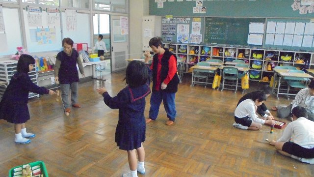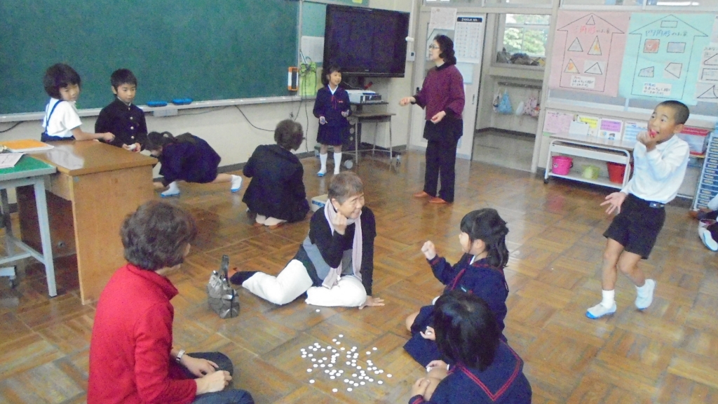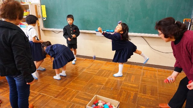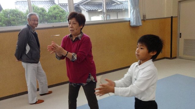 先日の祖父母参観で昔遊びをいっぱい習いました。おじいちゃん、おばあちゃんも懐かしそうでした。