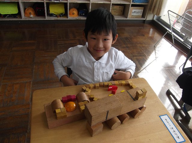 いろいろな形を集めて並べて、作りました。片付けると壊れて消えてしまうので写真に撮りました。一部だけしか紹介できませんがごめんなさい。残りは・・・