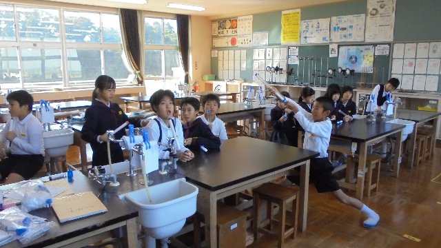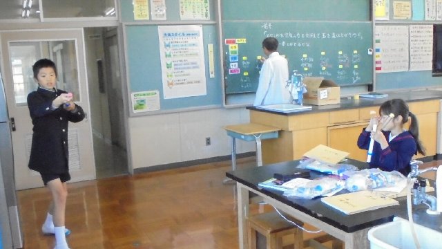 職員室横の理科室からポーン、ポーンと気持ちの良い音が聞こえてきました。学習の最後に的当て競争をしています、だれが一番遠くまで飛ばせるか競争しています。結果はどうなったのでしょう・・・