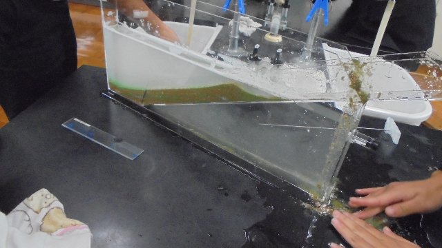 大地の秘密、地層がどのようにできたか実際に実験してみるのです。すごいですね。