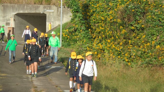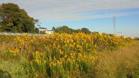 まぶしい日差しの中、登校です。昨日から秋らしいさわやかな日が続いていますが、風がふくと冷たい!です。今年はセイタカアワダチソウが勢いよくあちこちに咲いていますね。