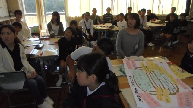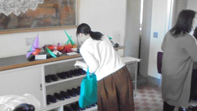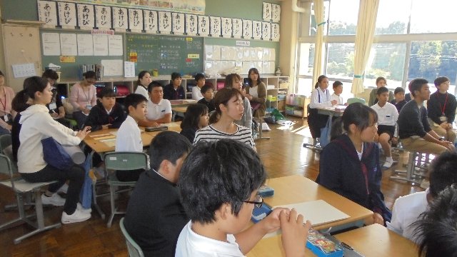別の話ですが、同じ2年生のカボチャが好評で、お客さんみなさんがしげしげと「じょうずやね~」と見てから帰られます。写真は看護大の皆さんです。