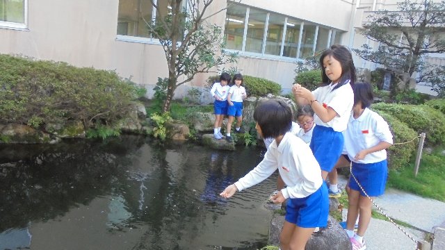 元気です、明るいです。カメラを向けると避けてしまう子が多いのに、この子達はポーズをとります。決まっていますね。手伝いも良くしてくれます。今日は池の魚にえさやりです。冬ごもりを前に、金魚が丸丸と太ってきています。週末はお子さんと学校まで散歩はいかがですか。いろいろなものに出会えますよ。