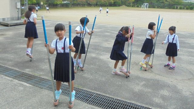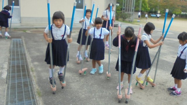 竹馬が流行っています。まだまだそんなに上手でありませんが。先日の昔遊びボランティアで習った。まだ一番下の高さですが、だんだん高くなって・・・楽しみですね。