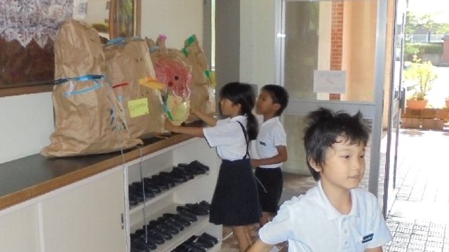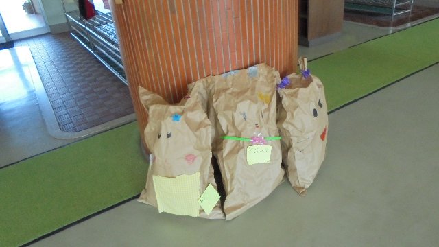 2年生が教室に飾っていた図工の作品を玄関に飾ってくれました。いろいろなキャラが登校した子どもたちを迎えてくれます。ミニトトロがいっぱい、ジブリワールドですね。こんな愉快な作品を創り出すことができる2年生の感性はすばらしいですね。通知簿渡しまでいるかな?それぞれの家にお帰りかな?