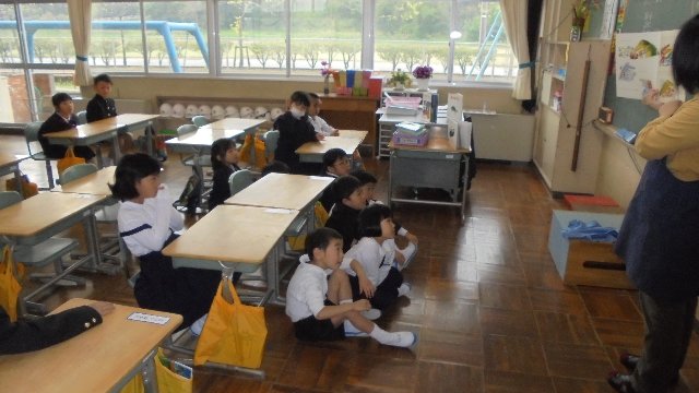 4/11 1年生 「ねずみくんのチョッキ」「がっこうだってどきどきしてる」