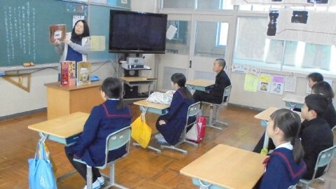 司書の読み聞かせ(月曜日、全学年を順に回る)