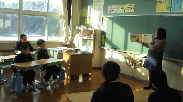 今日は1年生に読み聞かせをしました。インフルエンザが心配される時期ですが、1年教室は全員そろって元気な挨拶をしてくれました。