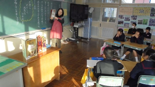 12/12 4年生「こりすのクリスマス」「けんぽう絵本おりとライオン」