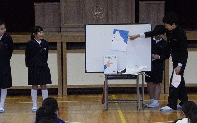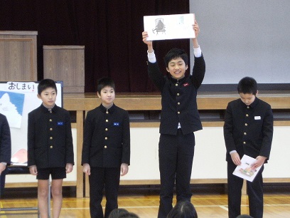 12/12 4年生「こりすのクリスマス」「けんぽう絵本おりとライオン」