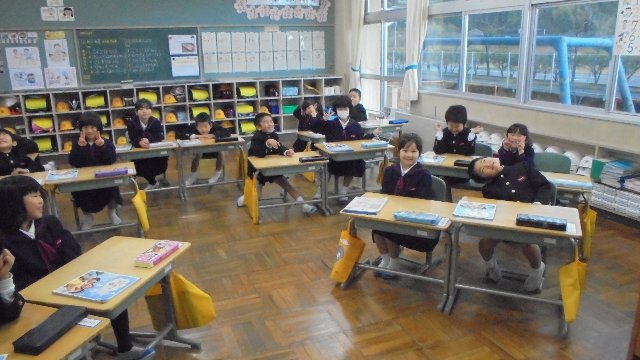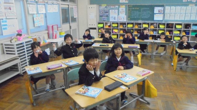 まずは、1年生。明るい笑顔、良い姿勢、勉強したことがしっかり身についていますね。