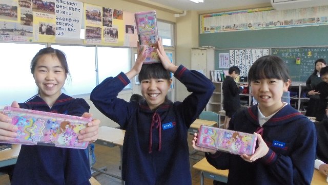 大海小学校には教育後援会という地域が学校をバックアップして下さるありがたい組織があります。6年間大切に一つの筆箱を使い続けて卒業する子どもたちを表彰して下さいます。写真は、今年のメンバーです。継続賞です。他にも善行賞やスポーツ賞、読書賞もあります。