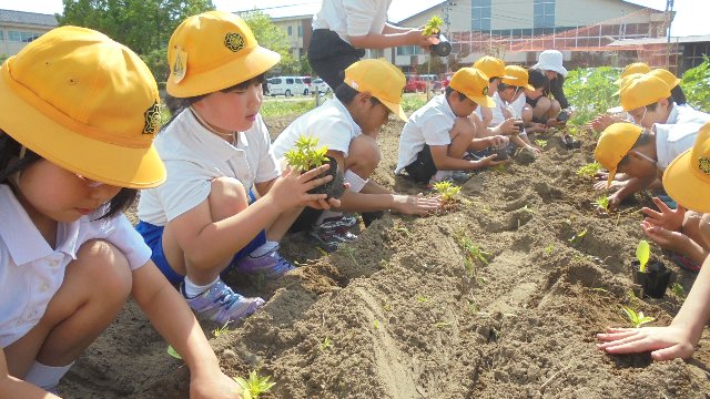 2018年6月18日 12時16分 季節柄、園芸や農作物の話題が多くなっています。先週末、3年生がホウセンカの植え替えをしたおり、ひまわりの種を植えました。これは夏栗の区長さんのご厚意でいただいた特別な種です。ハイブリット種といって迷路づくりに使われるものです。早速畑に迷路ができるよう種植えをしました、うまくできるかな。昨年は一面がオレンジ色の畑になってきれいでした。