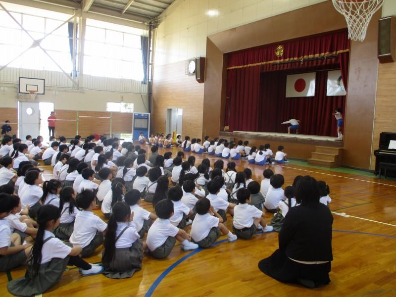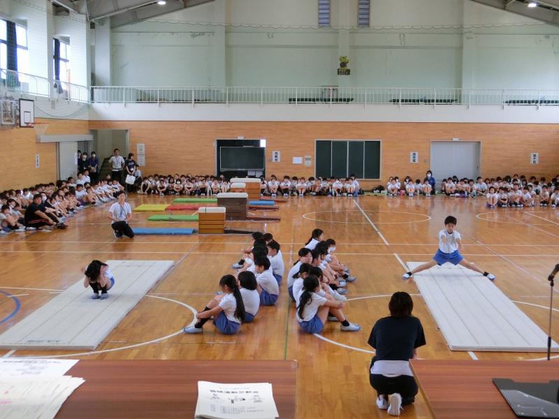 6月5日(水)に内灘町立向粟崎小学校の体育館で、内灘町器械運動交歓会が行われました。4年生49名が一丸となり、4月からたくさん練習してきた成果を発揮することができました。また、他校の演技を見て、「あの技ができるようになりたい!」と器械運動交歓会が終わった後も、休み時間に一生懸命鉄棒の練習をする子もいました。器械運動交歓会を通して、心身ともにたくましく成長した姿が見られ、とても素晴らしかったです。