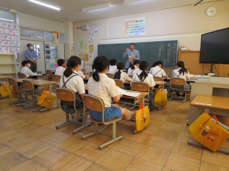 日々のゴミの出し方も工夫することで、限りある資源の節約になるというお話をされていました。また、地域から出るゴミを処理するためには、お金がかかっているということを聞き、子どもたちは驚いている様子でした。この学習を生かして、子供たちから学校やご家庭でのゴミを減らせるといいなと思います。
