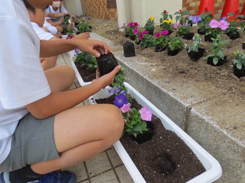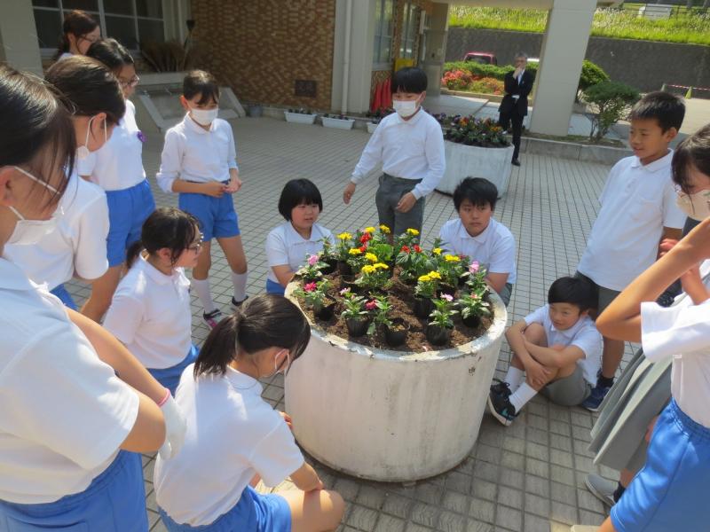 6月12日(水)の委員会で、園芸美化委員会では「人権の花」に取り組みました。はじめに、人権の花についてのお話をお聞きした後、子供達は協力しながらたくさんの花を玄関の花壇に植えました。これから協力して花を育てながら、花の成長とともに子供たちの優しさや思いやりの心も育んでいきたいと思います。