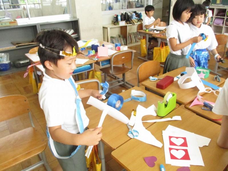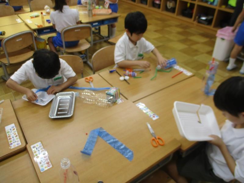 夏ならではの、水を使ったおもちゃ作りを行っています。材料、作り方を1から考え、試行錯誤して頑張っています。材料集めへのご協力、ありがとうございました。