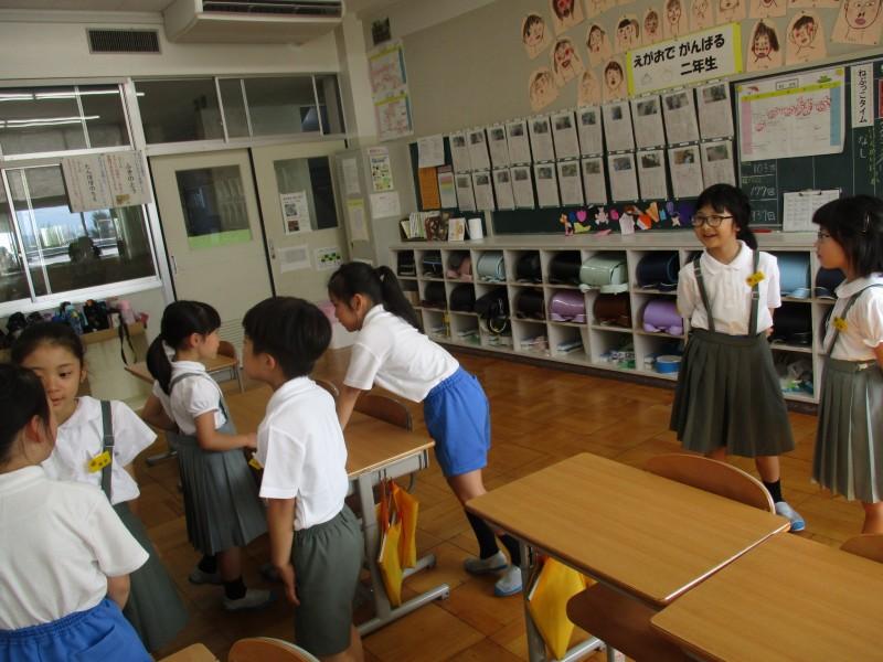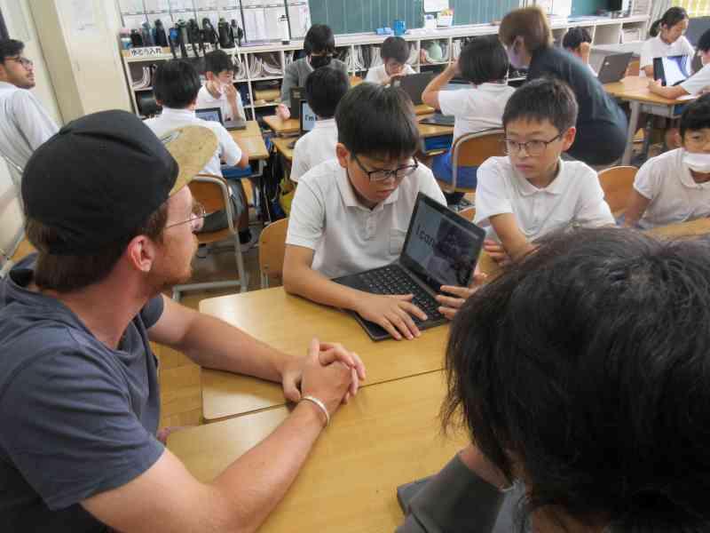 児童の振り返りの中には「4月にした時よりも緊張せずに英語で話すことができた」「英語で質問することもできた」など1学期の学びを実感しているものが多くありました。