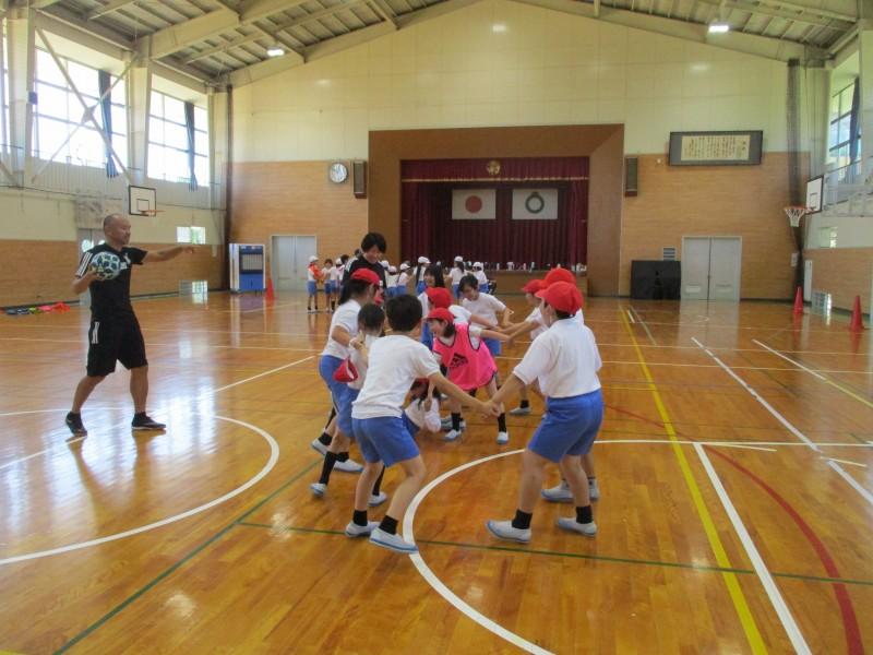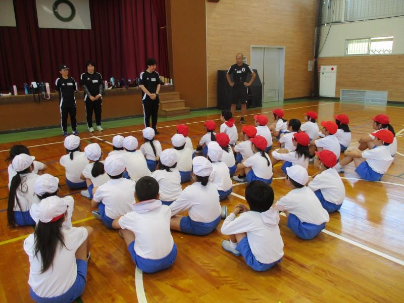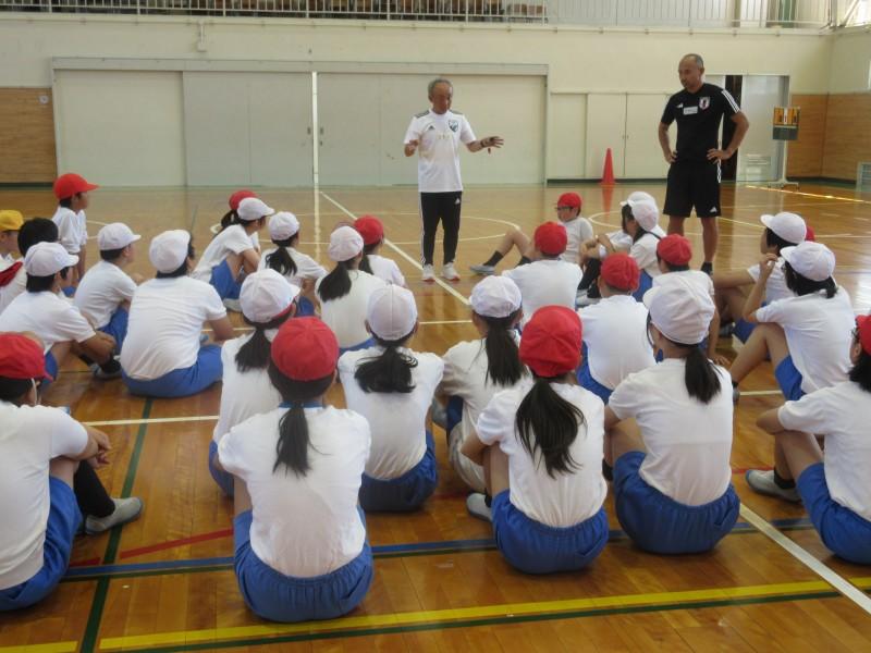 本日「スポーツを通じた子どもたちの心のケア」として、サッカー元日本代表の山田卓也選手、井坂美都選手、中川典子選手、山岸靖代選手が本校を訪問されました。1日を通して全校の児童と交流していただきました。サッカーを中心としたいろいろなゲームをして、みんな笑顔いっぱいでとてもいい汗を流していました。体を動かすことやチームで協力する楽しさ、そして周りに人がいてくれることのありがたさ等たくさんのことを学ぶことができました。一人ひとりにとってスポーツの良さを改めて感じることができた貴重な体験となりました。