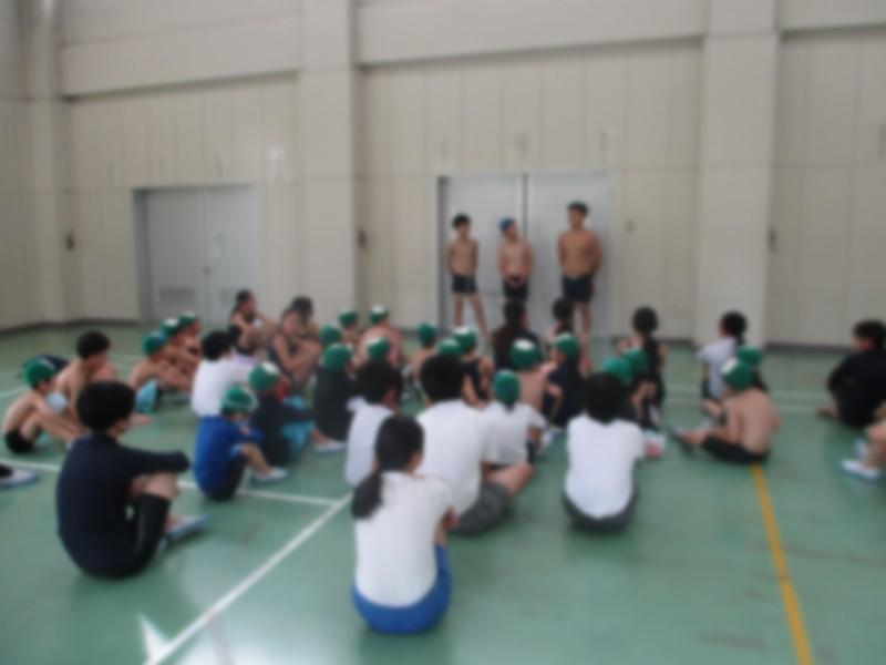 6年生には、準備運動から、シャワーやプールの使い方までたくさんのことを教えてもらい、最後には、洗濯機やおにごっこをして遊びました。