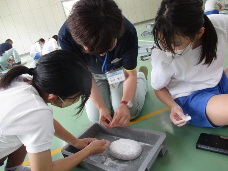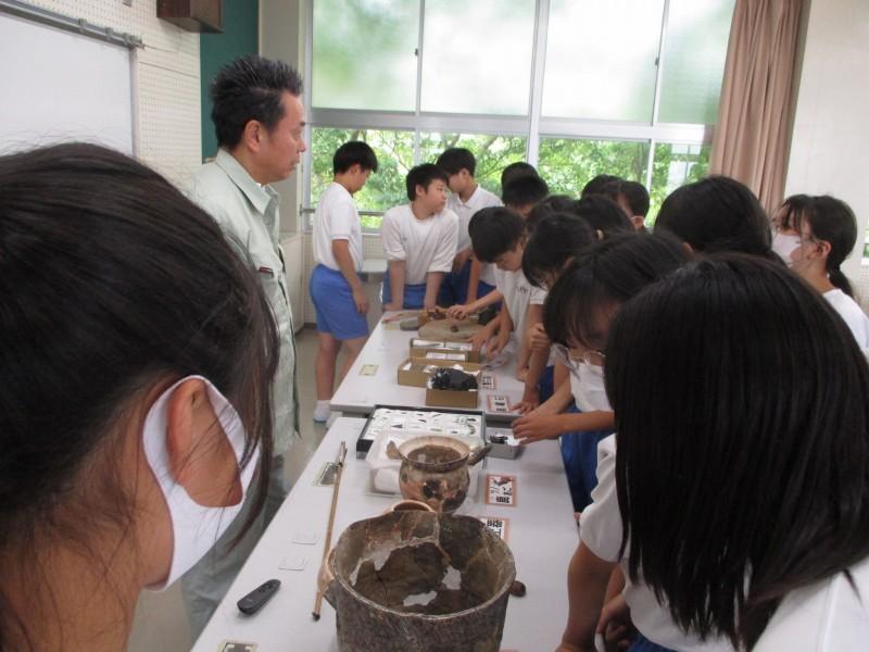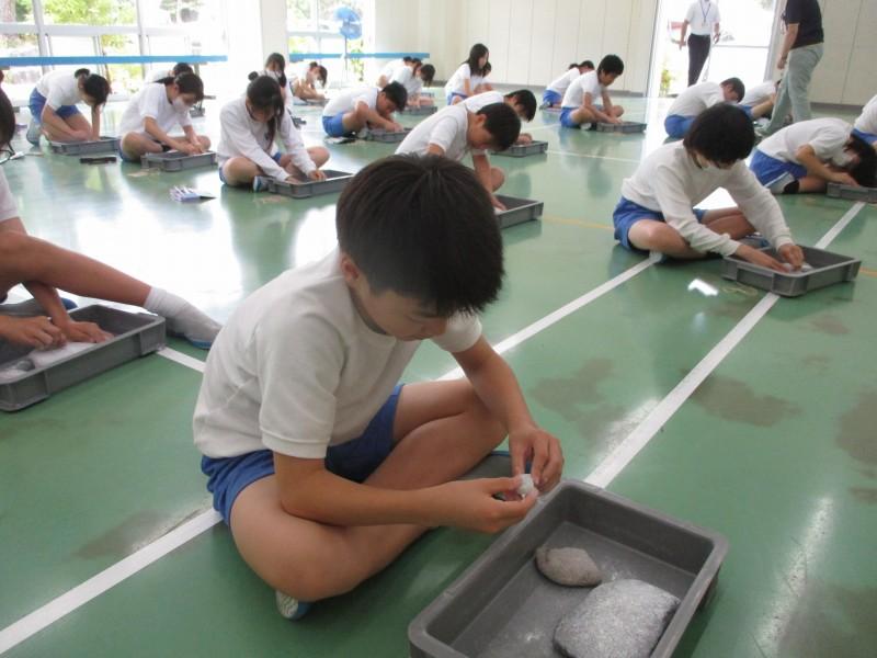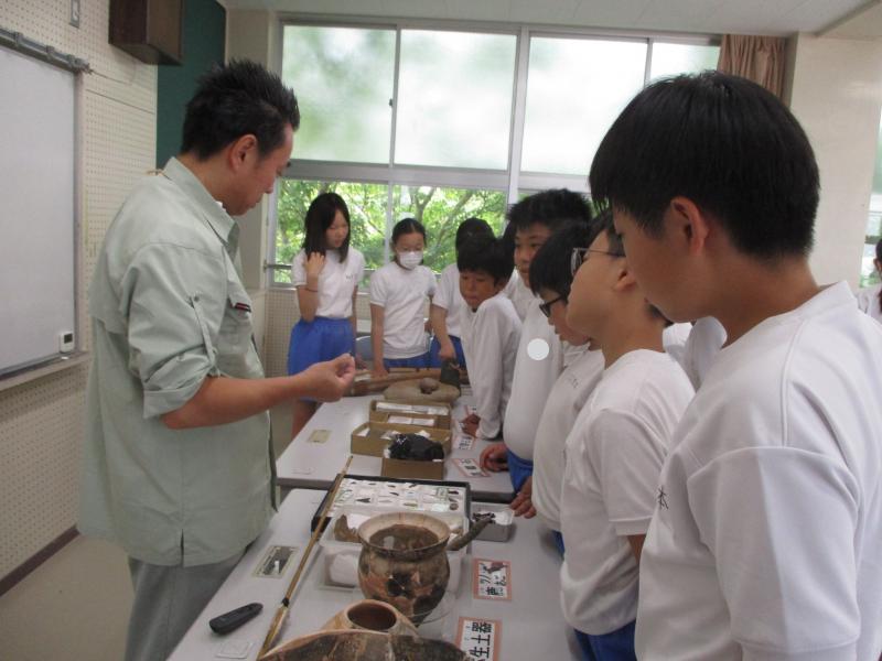 6年生は、埋蔵文化センターの方にお越し頂いて出前考古学教室を行いました。
