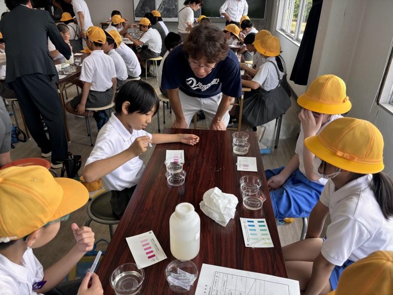 5年生は総合的な学習の時間に、身近だけれどもあまり詳しく知らない「河北潟」について学習しています。1学期は、河北潟についての知識をインターネットや本等の資料から集めています。調べる中で出てきた疑問を解決するために、河北潟改良土地区の方々に協力していただき、河北潟の管理についてや水質検査を行いました。