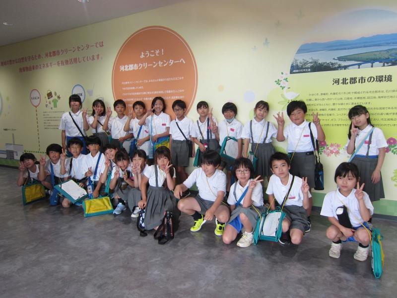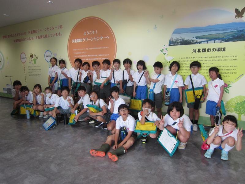 ごみの処理の仕方を学ぶため、今日は「河北郡市クリーンセンター エコラ」に見学に行きました。お話を聞いたり、実際にゴミピットの様子を見たりすることができて、とても勉強になりました。
