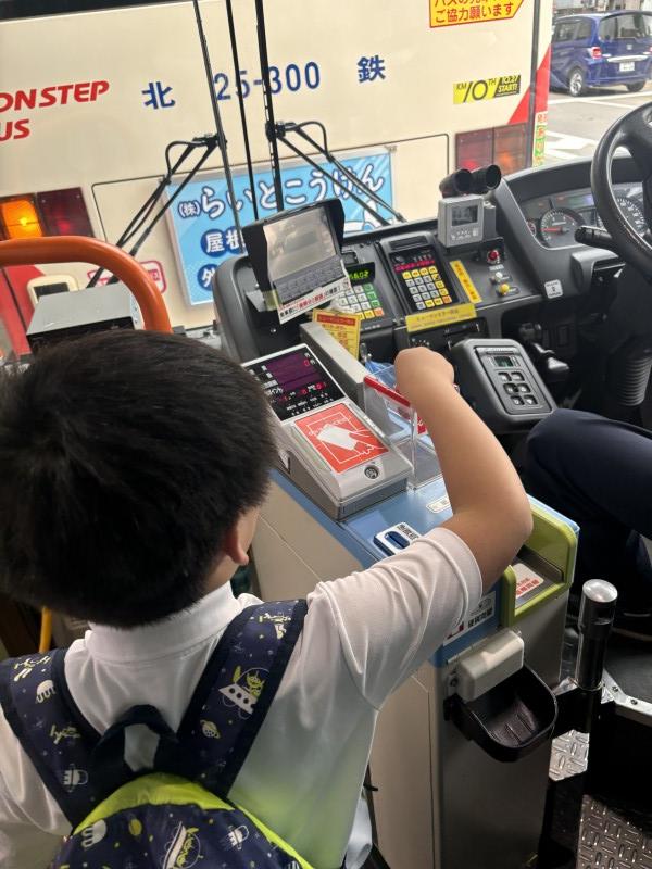 目的地までは、電車とバスを利用して向かい、公共交通機関に乗るときのマナーを学んだり、自分の買いたい物を買うために、店員さんとのやりとりや支払いの仕方など学校で練習したことを実践し、じょうずにお買い物をしていました。