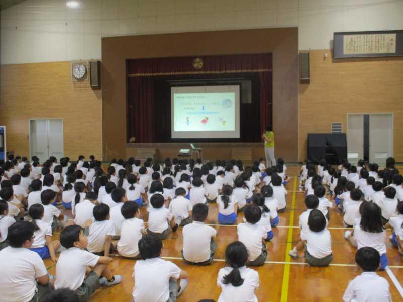 養護教諭より虫歯の予防と熱中症対策について話を聞きました。