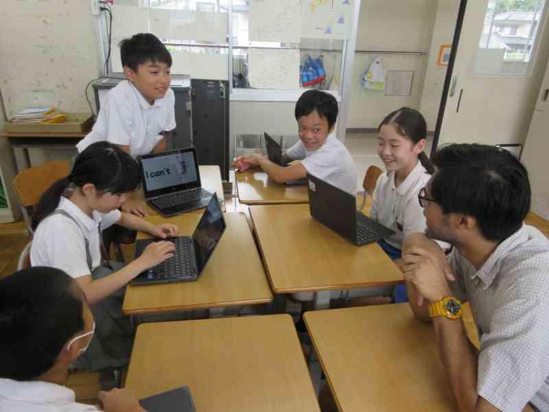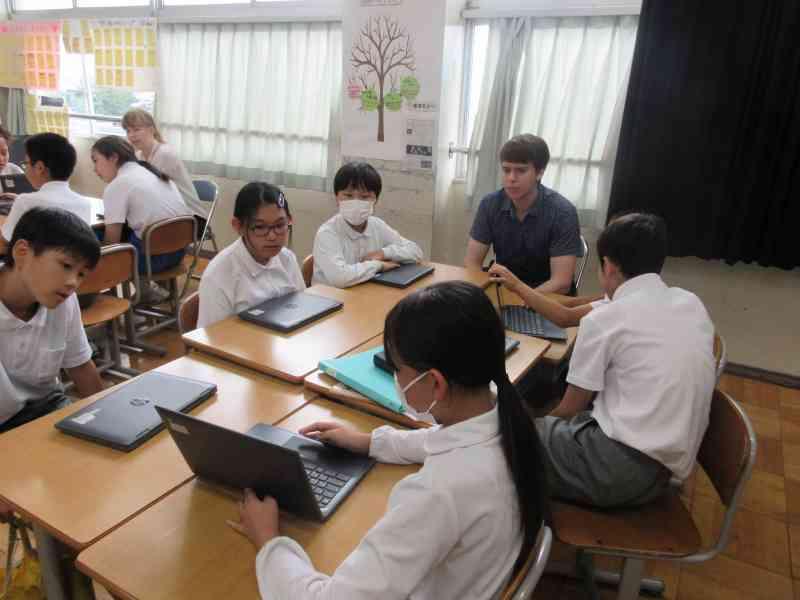本日、国際交流員さんやALTさん等の4名をお招きし、Unit3のまとめとして「4月よりもパワーアップした自己紹介」を行いました。1学期に学習したことを活かしながらスライドを作成し、相手に伝えることができました。