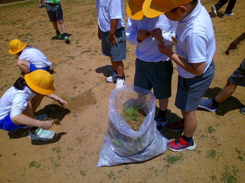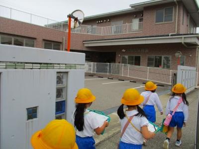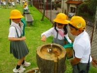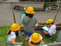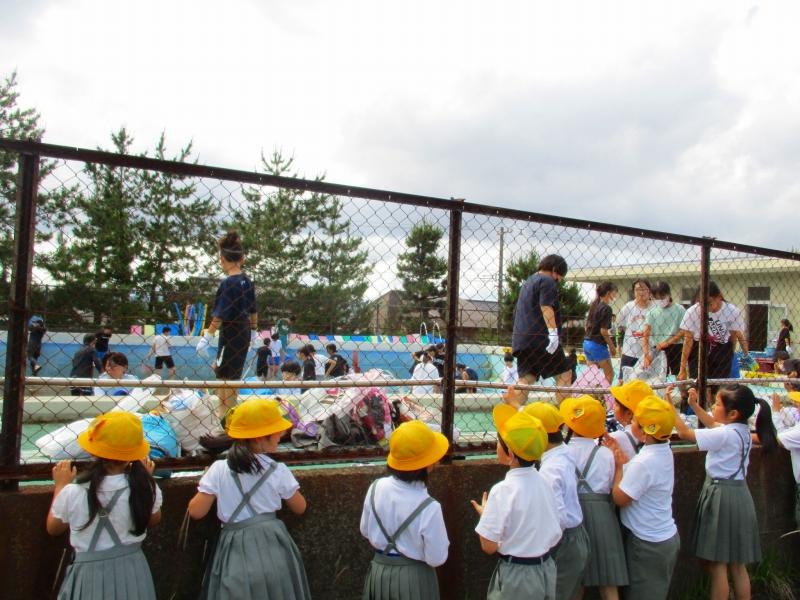 2年1組の子たちが、ミニトマトの観察に行くと、5・6年生がプールを掃除してくれていました。