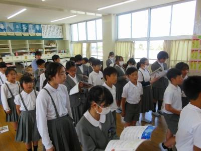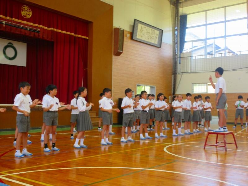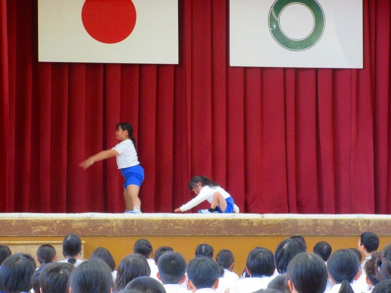 4年生は、先週行われた器械運動交歓会での演技を、5年生は、12日に行われる内灘町小学校音楽会での演奏や合唱を披露しました。披露した後には、他学年からの感想もあり、披露した側にも見ていた側にもとてもよい時間になりました。