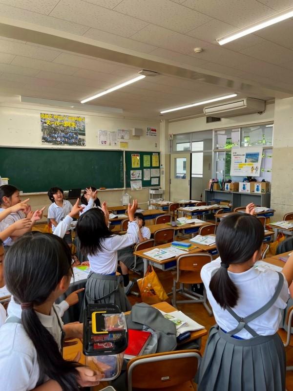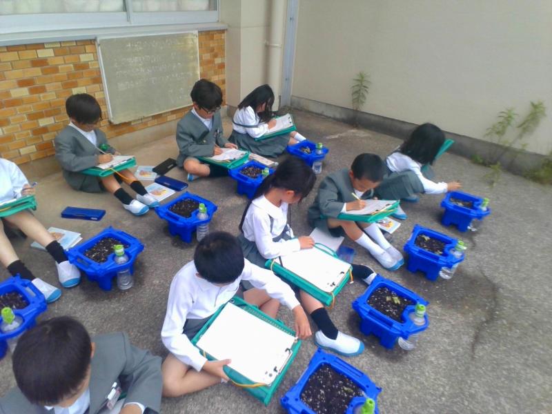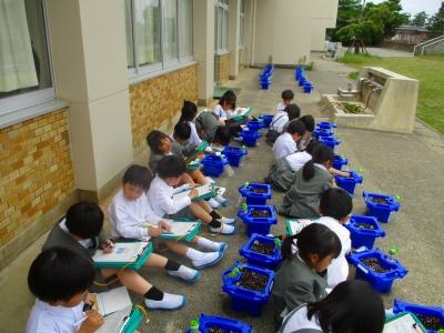 3年生は、理科の学習で、モンシロチョウの成長ををたまごからずっと観察してきました。たまごからかえった幼虫が、少しずつ大きくなりさなぎから成虫へと成長しました。成虫となったモンシロチョウに今までありがとうという感謝の気持ちを込めてお別れ会をしました。ひらひらと飛んでいくモンシロチョウをみんなうれしそうに見送っていました。