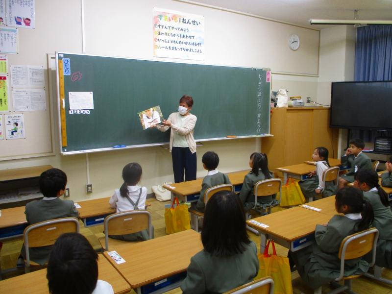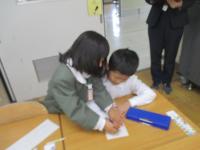 1年生の学習「ぶんをつくろう」を全校の先生で参観しました。