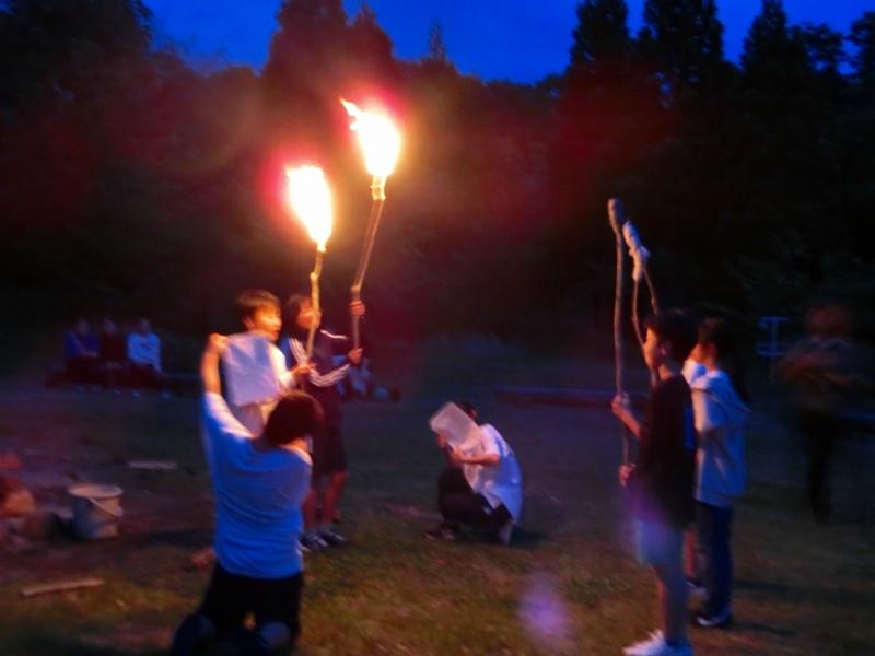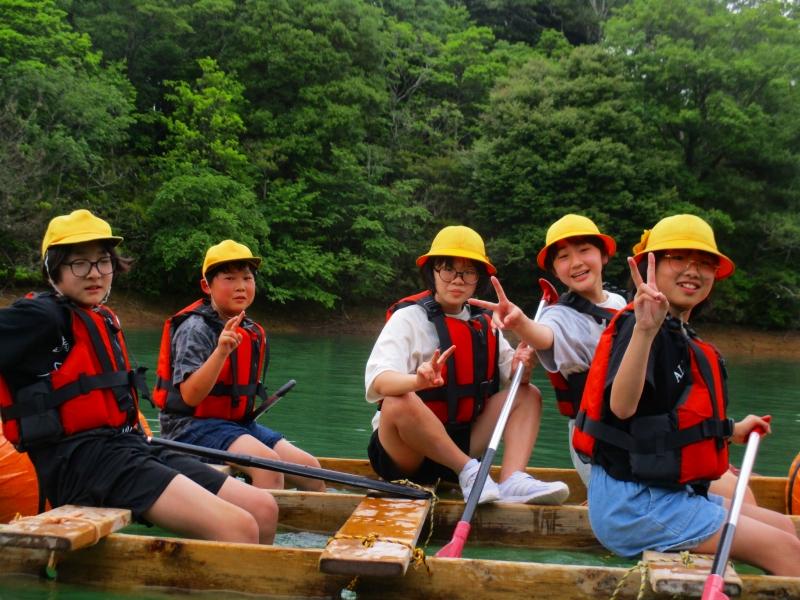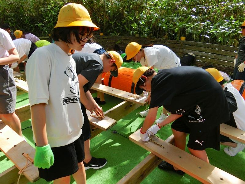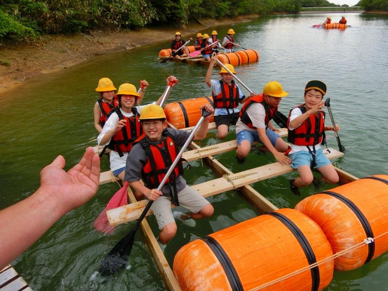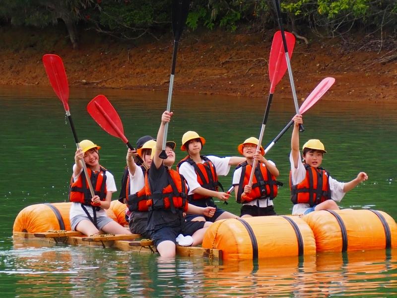 1日目は、ウォークラリー、いかだ体験、キャンプファイアを行いました。天候にも恵まれ、思いっきり楽しめました。
