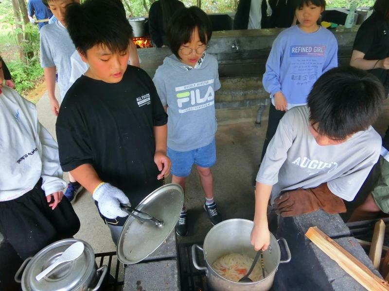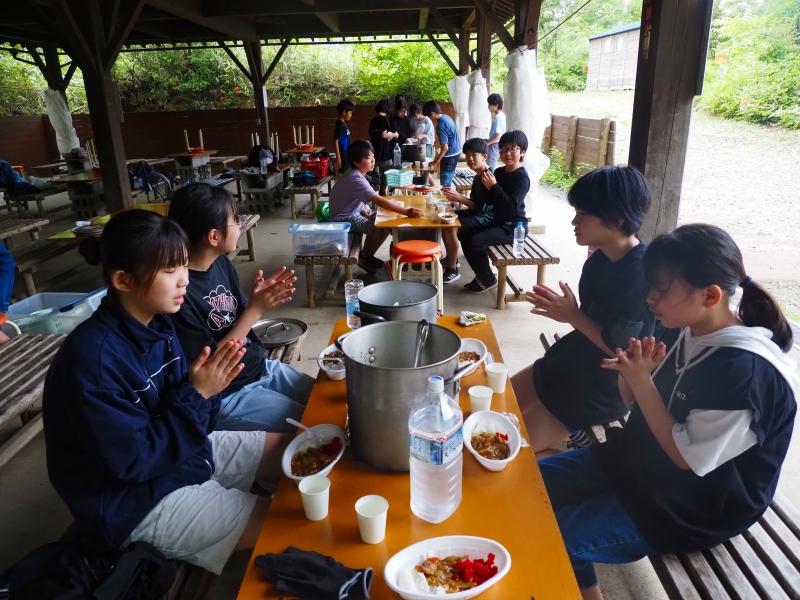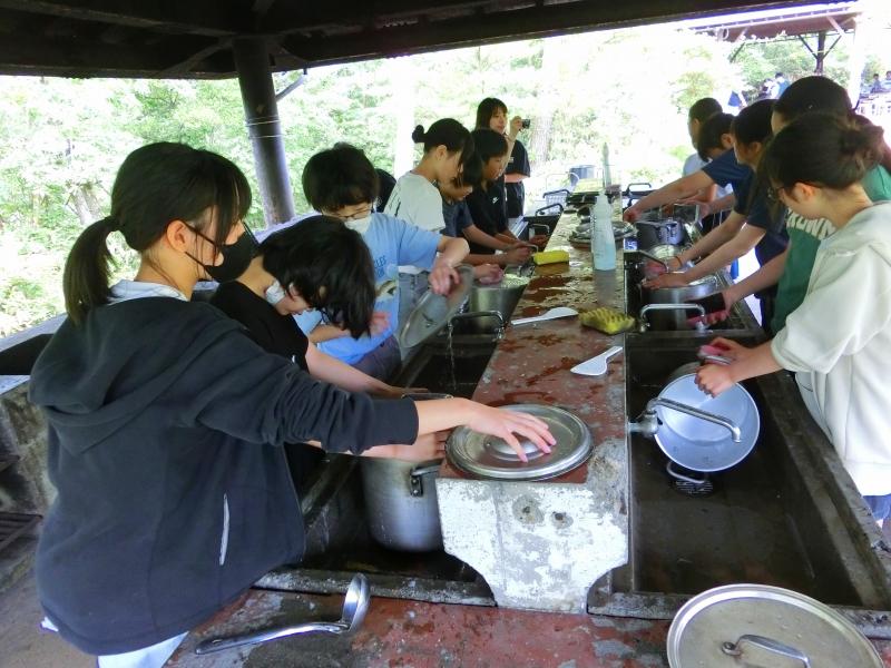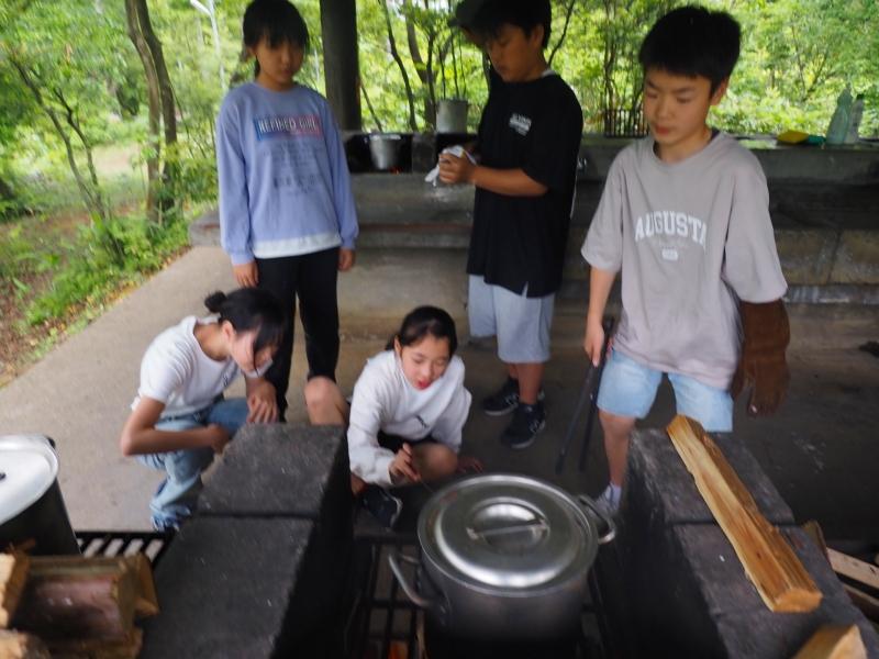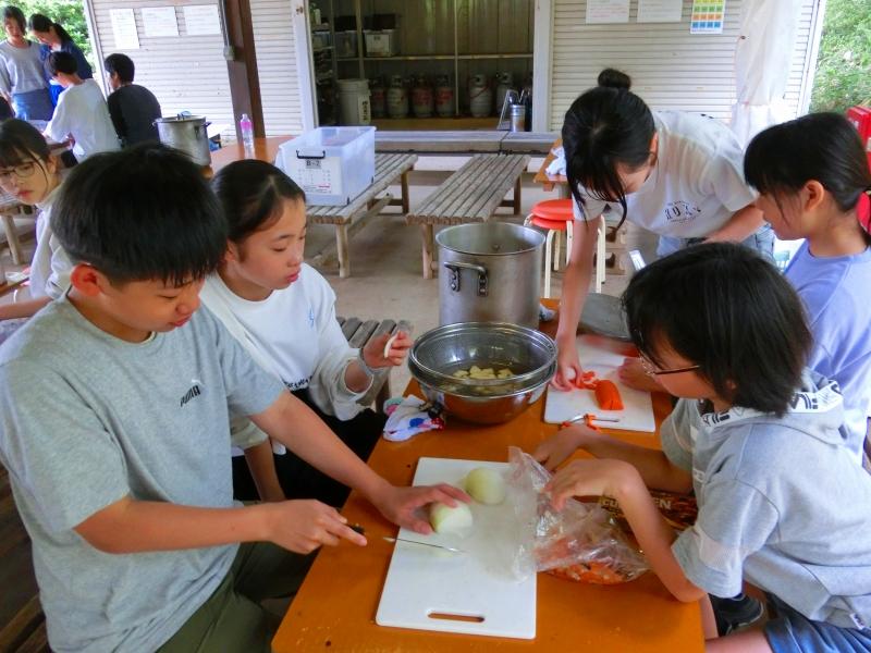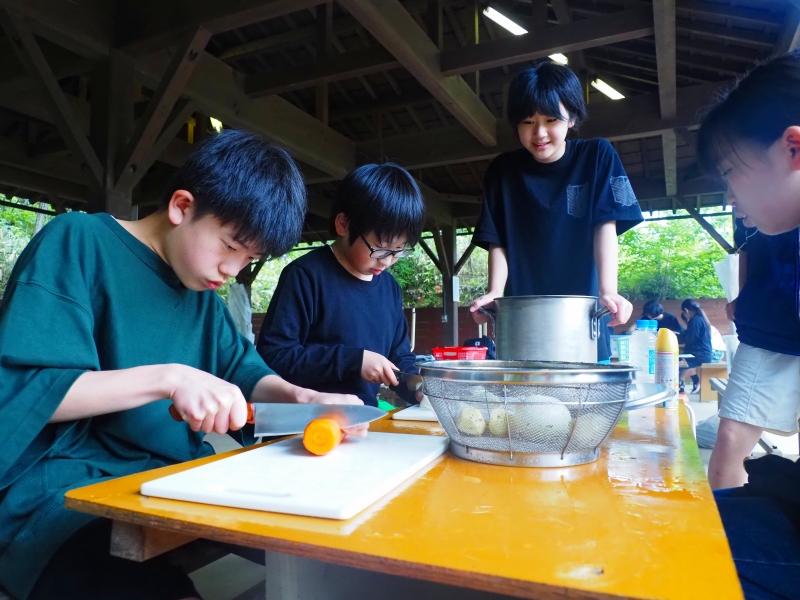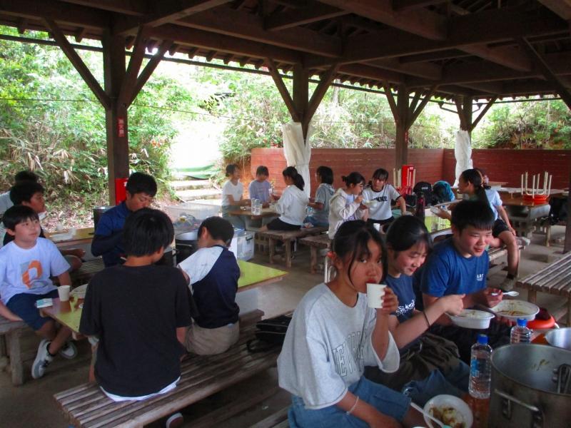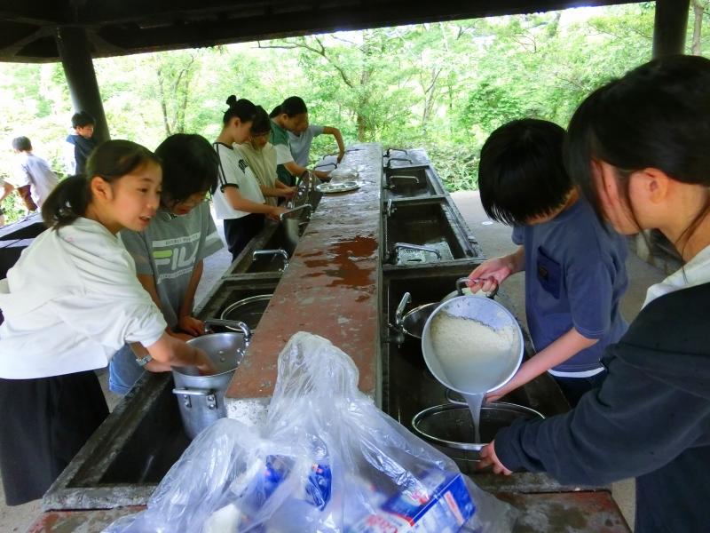 野外炊飯では、班ごとに役割分担をしてカレーライスを作りました。みんなで協力して作ったおかげでおいしいカレーが食べられましたね!片付けまで丁寧に頑張っている姿も素敵でした。