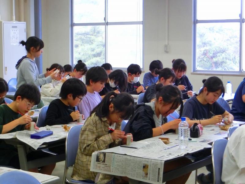 てん刻では、自分の名前の一文字を集中して一生懸命彫っていました。