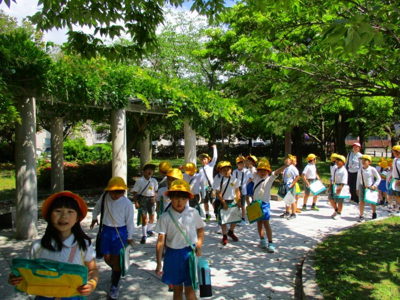 町探検に行く前には、メモをとる練習として、学校を探検しました。