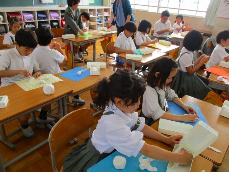 ねん土をぎゅっとにぎったら何に見えるかを考えて作品を作りました。