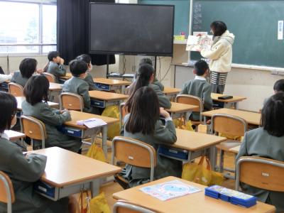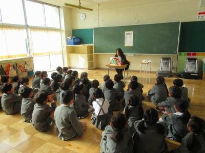 3月5日(火)の朝は、各学年2組の教室で、がらがらどんさんによる今年度最後のよみきかせが行われました。