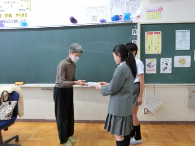 この日は、今年度の最後の読み聞かせということもあり、児童からボランティアさんへお礼の言葉を伝えさせていただきました。