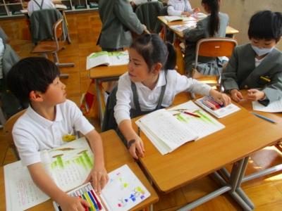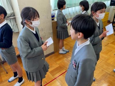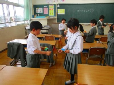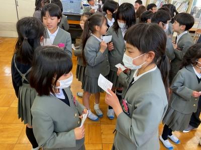 国語科の学習でまとめた「自分のお気に入りのもの」についてクラスを越えて紹介し合いました。子どもたちは1年間、多くの場面で相手に伝える、そして相手の話を聞くことをしてきました。本当に大きく成長しました。4年生になっても、今年の経験を大切にして頑張っていってほしいです。