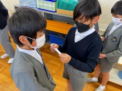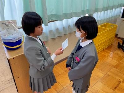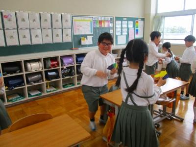 1年生に楽しんでもらうために、2年生は休み時間も一生懸命準備をしていました。