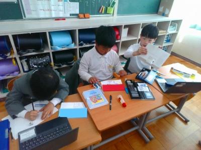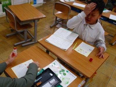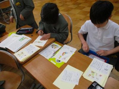 国語では音読劇の準備、生活では遊びの準備、図工では招待状の作成。