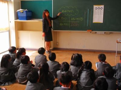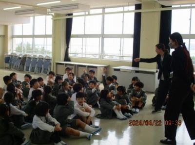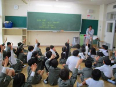 2年生はリリー先生と一緒に外国語を学習しています。