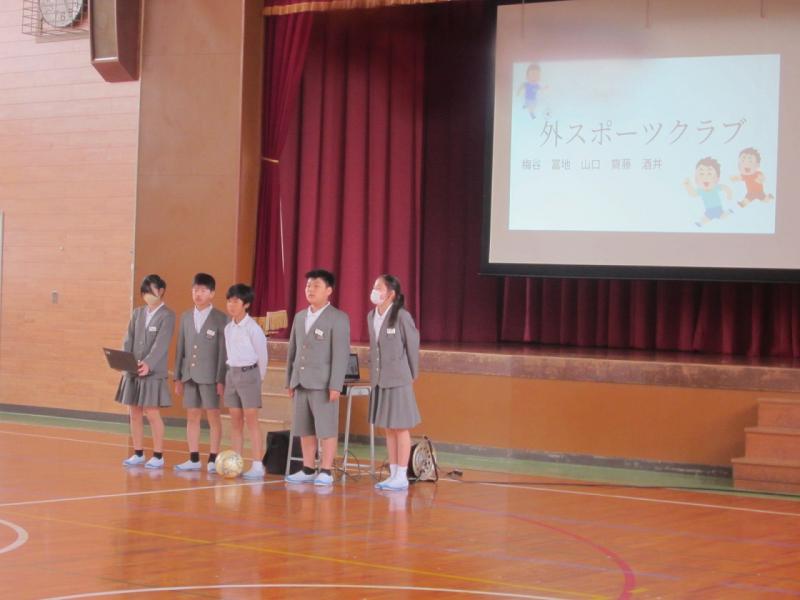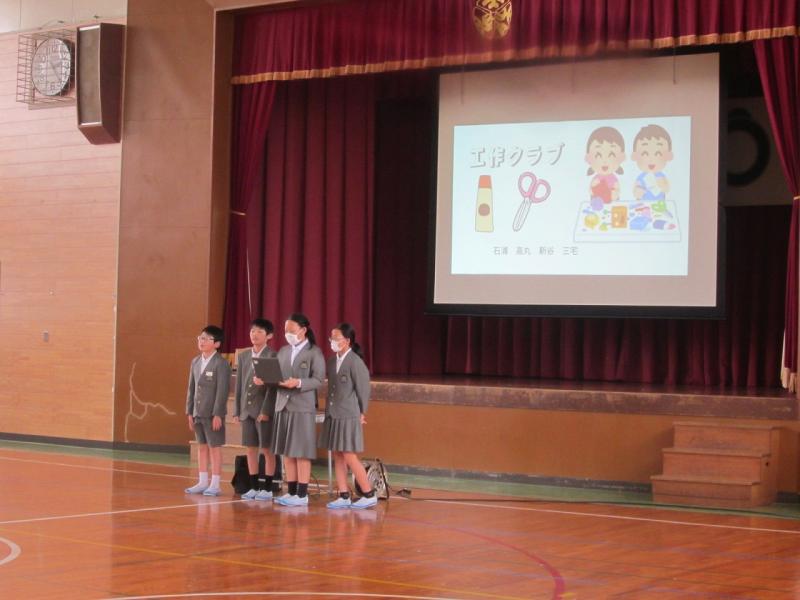 4、5年生は熱心に6年生の発表を聞いてどのクラブに入ろうか決めていました。。