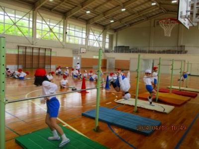 今年度が始まり2週間が経ちました。4年生の体育では器械運動交歓会に向けて少しずつ練習が始まっています。